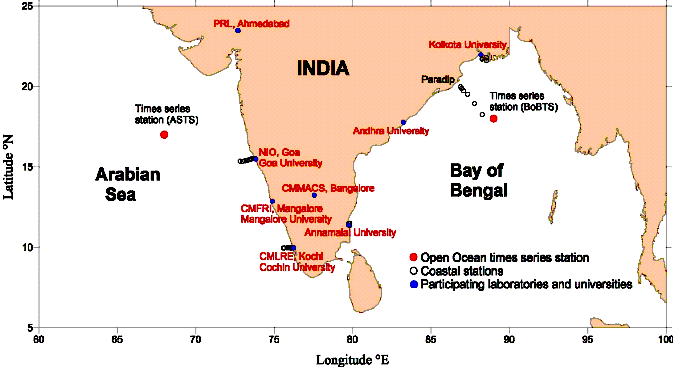 Long-term monitoring of oceanographic, biogeochemical and ecological processes in the North Indian Ocean through establishment of open-ocean time series stations in the Arabian Sea and Bay of Bengal