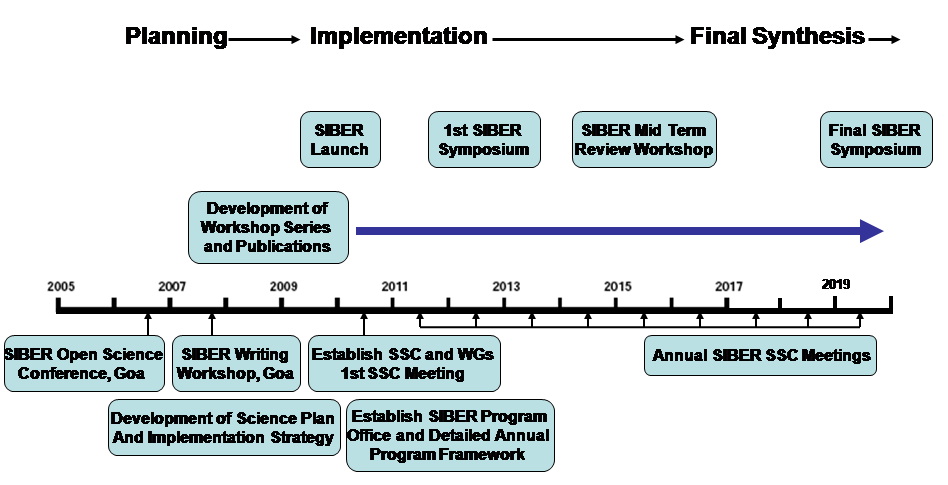 SIBER has played a pivotal role in initiation of plans to celebrate the 50th anniversary of the International Indian Ocean Expedition (IIOE). SIBER has also been instrumental in motivating international community to envision IIOE-2 as a 5 years expedition beginning in approximately 2015 and continuing through to 2020. Details on IIOE can be found at IIOE-2.