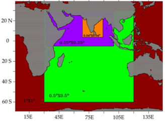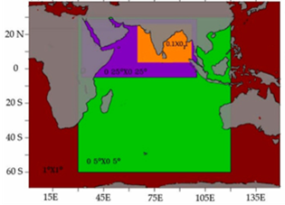 INCOIS WW3 Data assimilative model nested domains